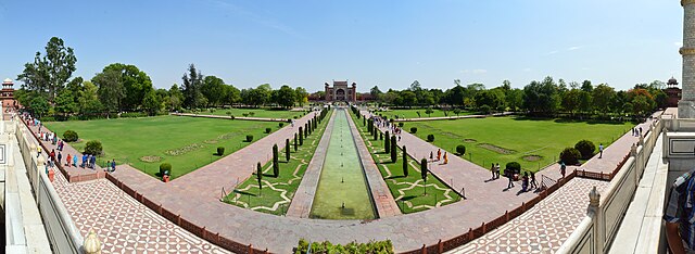 - 차르 바그(Charbagh) 정원: 페르시아식 4 분할 정원으로, 중앙 수로에 비친 타지마할의 반영은 사진 촬영 명소로 유명하다.